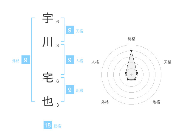 宇川 宅也さんの総格は18画の4点!