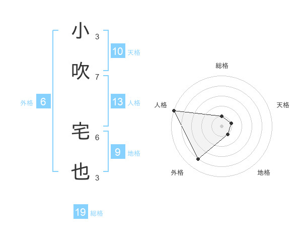 小吹 宅也さんの総格は19画の1点!