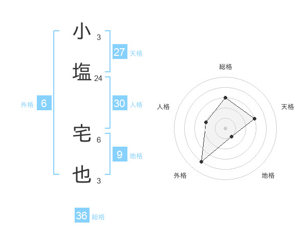 小塩 宅也さんを姓名の画数から五運を鑑定