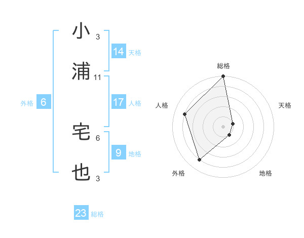 小浦 宅也さんを姓名の画数から五運を鑑定