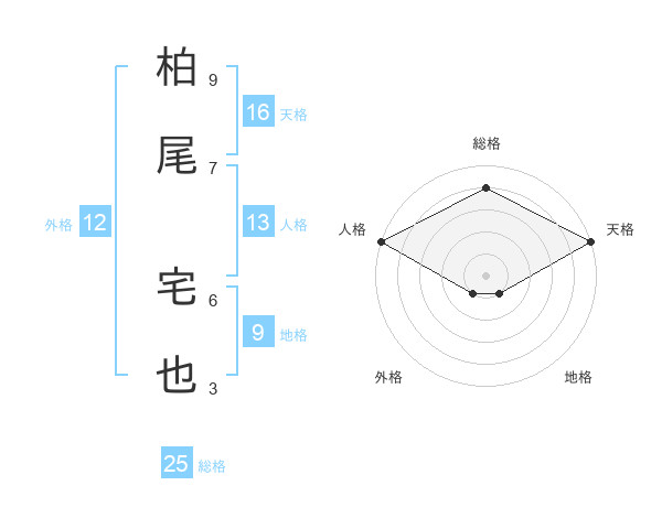 柏尾 宅也さんを姓名の画数から五運を鑑定