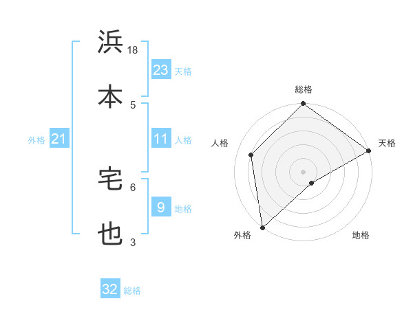 浜本 宅也さんの総格は32画の5点!