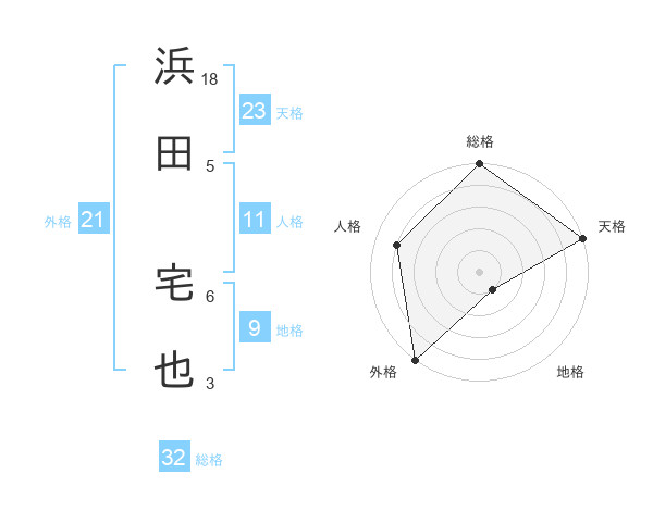 浜田 宅也さんを姓名の画数から五運を鑑定