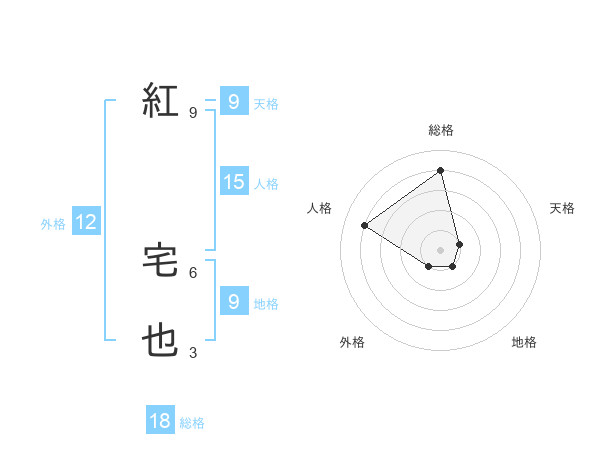 紅 宅也さんの外格は12画の1点!