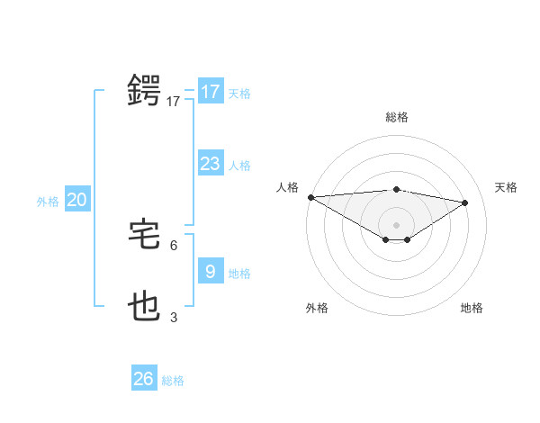 鍔 宅也さんの天格は17画の4点!