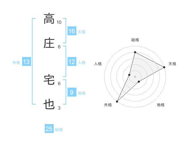 高庄 宅也さんを姓名の画数から五運を鑑定