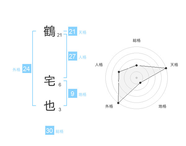 鶴 宅也さんの総格は30画の2点!