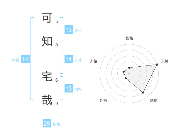 可知 宅哉さんの外格は14画の1点!