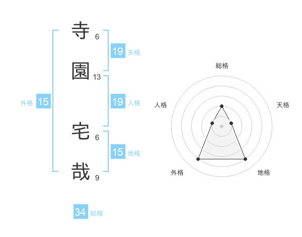 寺園 宅哉さんを姓名の画数から五運を鑑定
