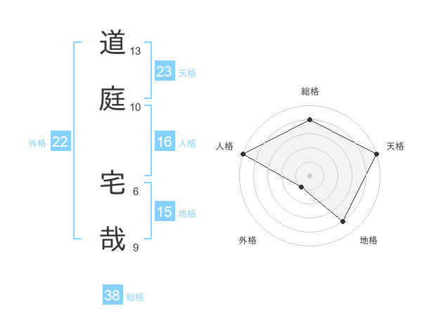 道庭 宅哉さんの総格は38画の4点!