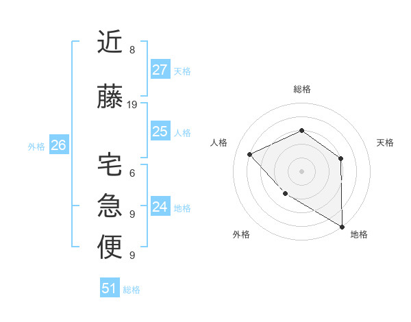 近藤 宅急便さんを姓名の画数から五運を鑑定