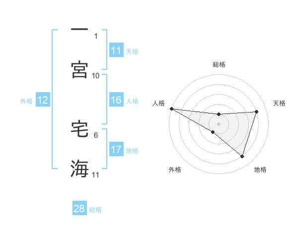 一宮 宅海さんを姓名の画数から五運を鑑定