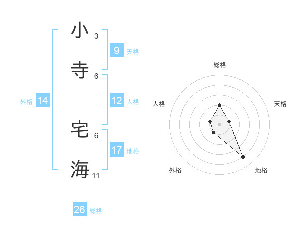 小寺 宅海さんの総格は26画の2点
