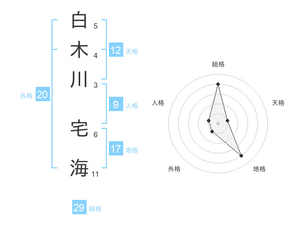 白木川 宅海さんを姓名の画数から五運を鑑定