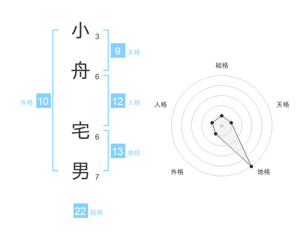 小舟 宅男さんの総格は22画の1点!