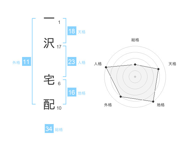 一沢 宅配さんを姓名の画数から五運を鑑定