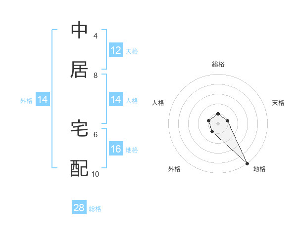 中居 宅配さんの総格は28画の1点!