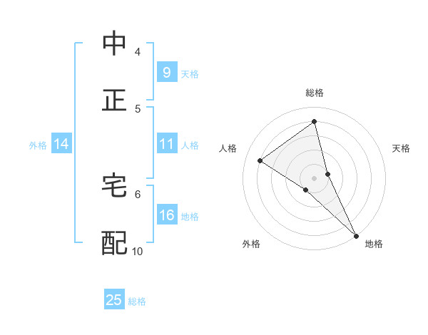 中正 宅配さんの総格は25画の4点!