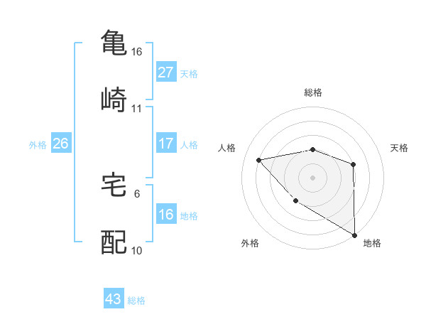 亀崎 宅配さんを姓名の画数から五運を鑑定