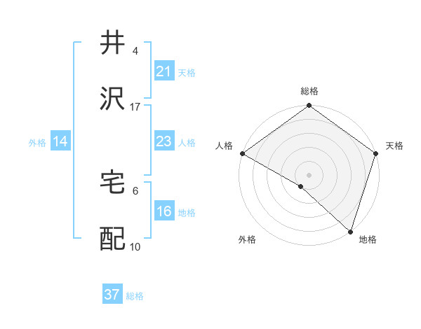 井沢 宅配さんの総格は37画の5点!
