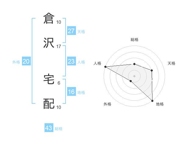 倉沢 宅配さんを姓名の画数から五運を鑑定