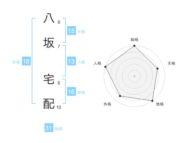 八坂 宅配さんの総格は31画の5点!