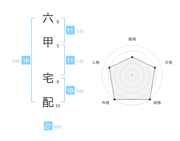 六甲 宅配さんを姓名の画数から五運を鑑定