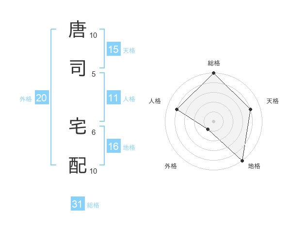唐司 宅配さんの総格は31画の5点!