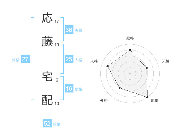 応藤 宅配さんを姓名の画数から五運を鑑定