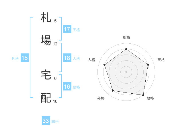 札場 宅配さんの総格は33画の4点!