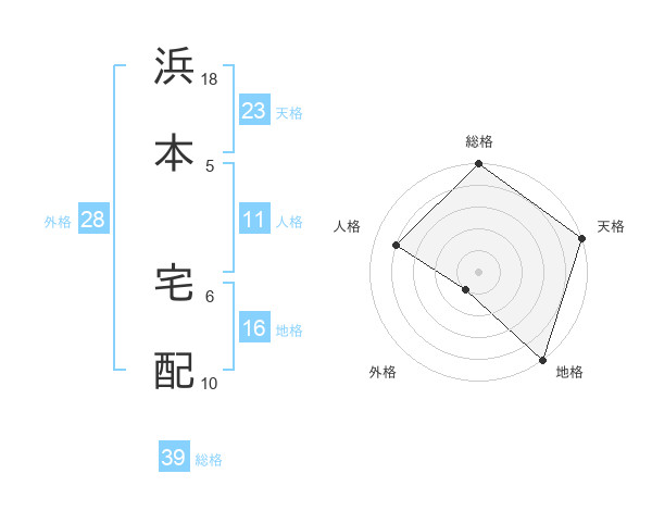 浜本 宅配さんを姓名の画数から五運を鑑定