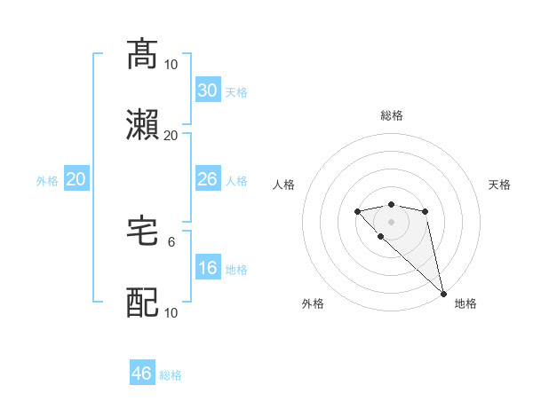 髙瀨 宅配さんを姓名の画数から五運を鑑定