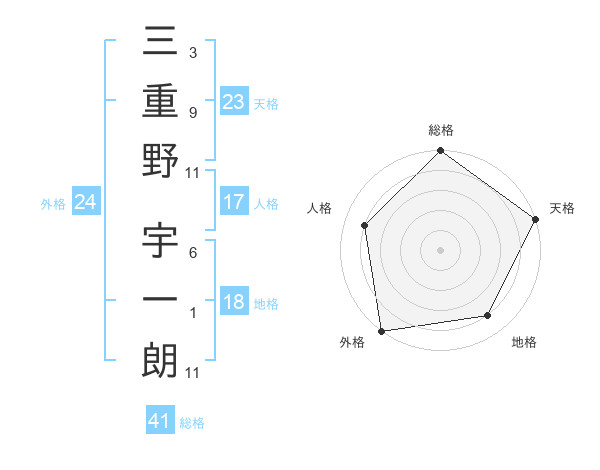 三重野 宇一朗さんの総格は41画の5点!