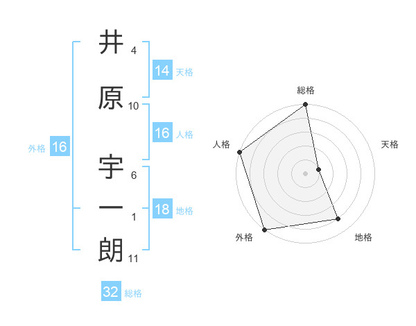 井原 宇一朗さんの総格は32画の5点