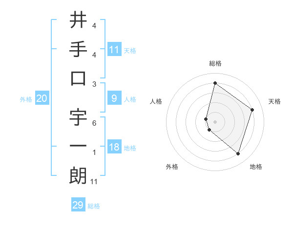 井手口 宇一朗さんを姓名の画数から五運を鑑定
