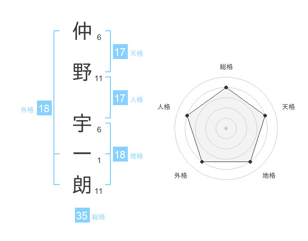 仲野 宇一朗さんを姓名の画数から五運を鑑定