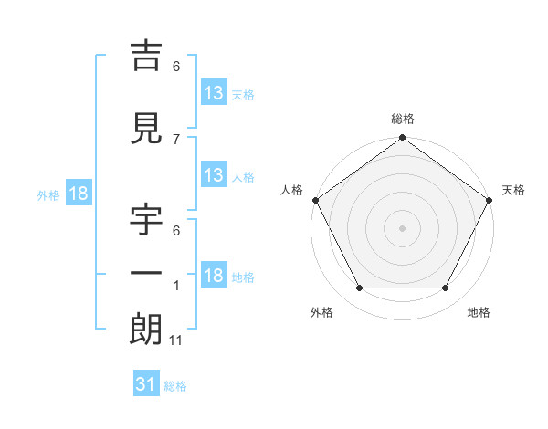 吉見 宇一朗さんを姓名の画数から五運を鑑定