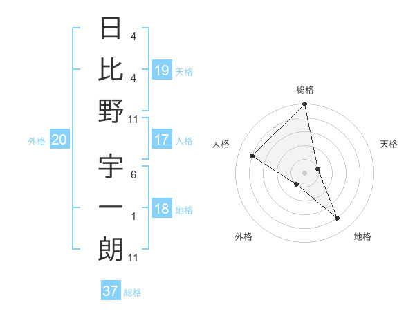 日比野 宇一朗さんを姓名の画数から五運を鑑定