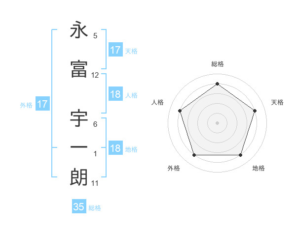 永富 宇一朗さんの天格は17画の4点!