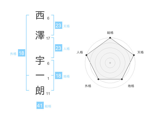 西澤 宇一朗さんを姓名の画数から五運を鑑定