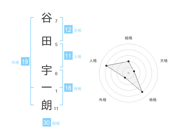 谷田 宇一朗さんを姓名の画数から五運を鑑定