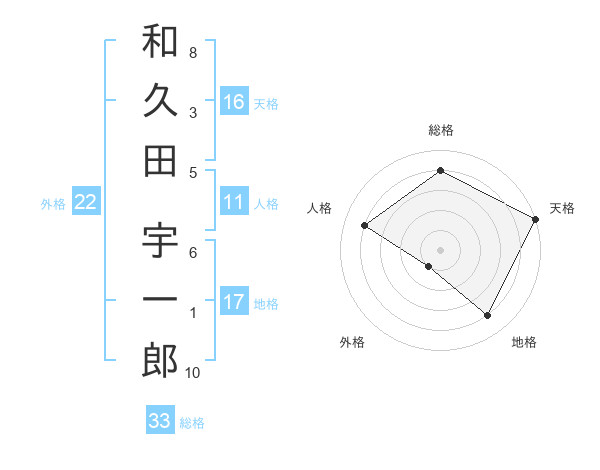 和久田 宇一郎さんを姓名の画数から五運を鑑定