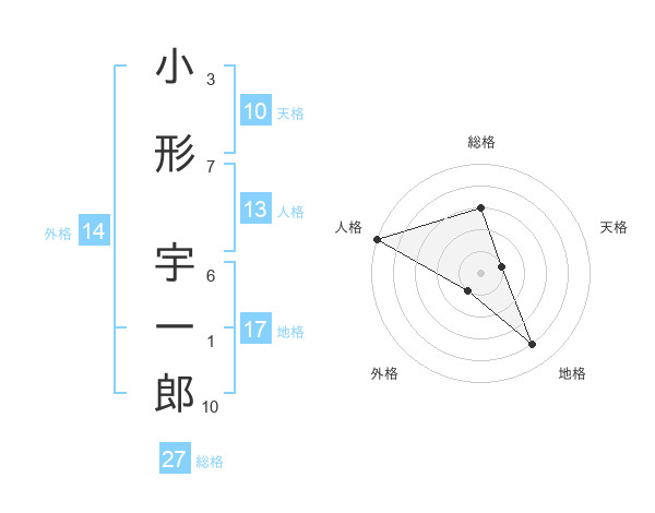 小形 宇一郎さんの総格は27画の3点!