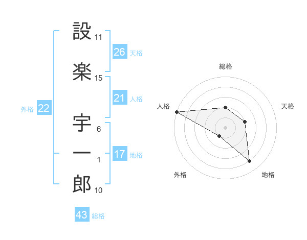 設楽 宇一郎さんを姓名の画数から五運を鑑定
