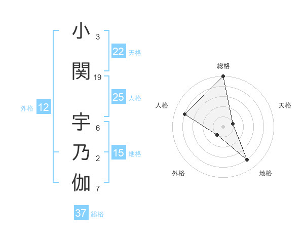 小関 宇乃伽さんを姓名の画数から五運を鑑定