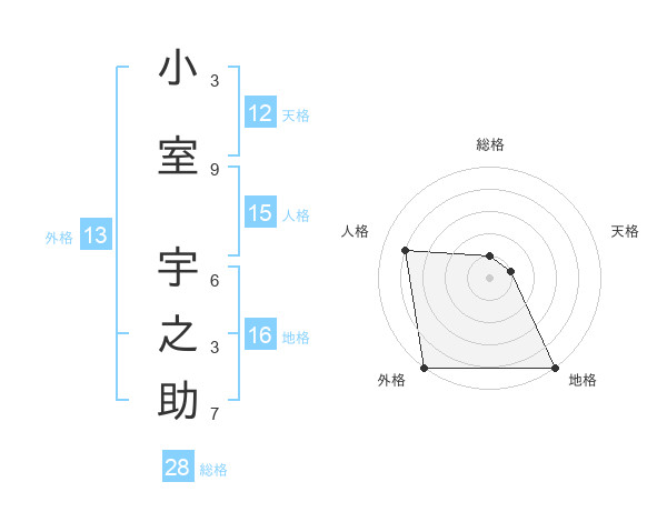小室 宇之助さんを姓名の画数から五運を鑑定