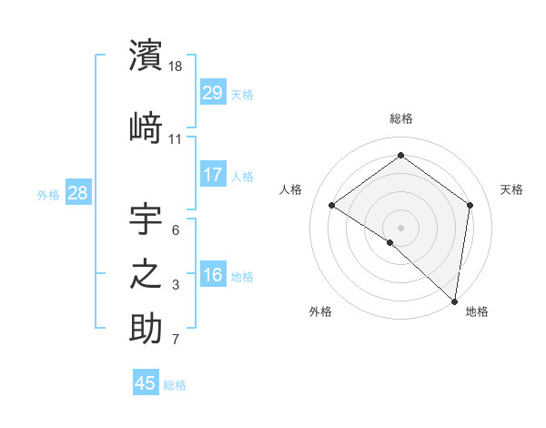 濱﨑 宇之助さんを姓名の画数から五運を鑑定