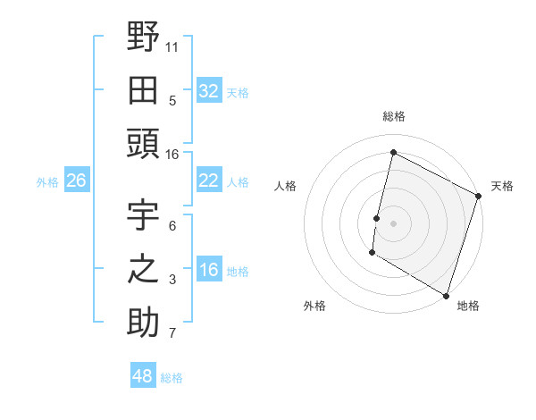 野田頭 宇之助さんを姓名の画数から五運を鑑定