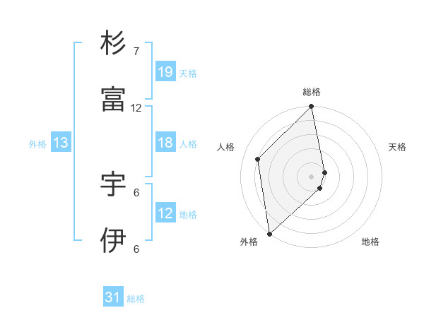 杉富 宇伊さんを姓名の画数から五運を鑑定