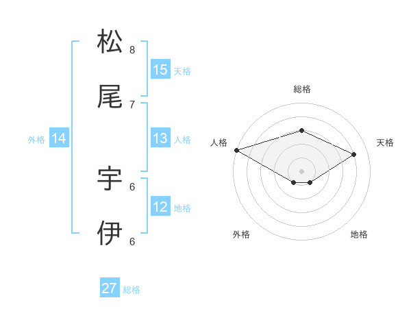 松尾 宇伊さんの天格は15画の4点!